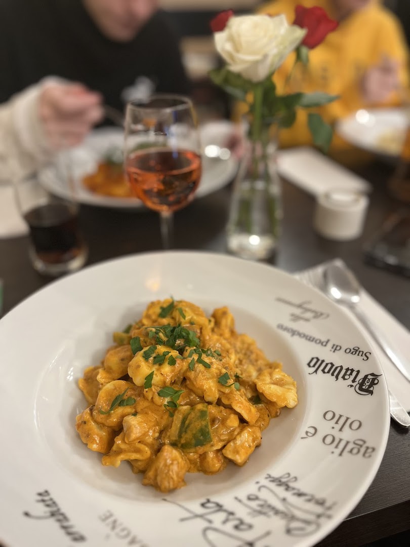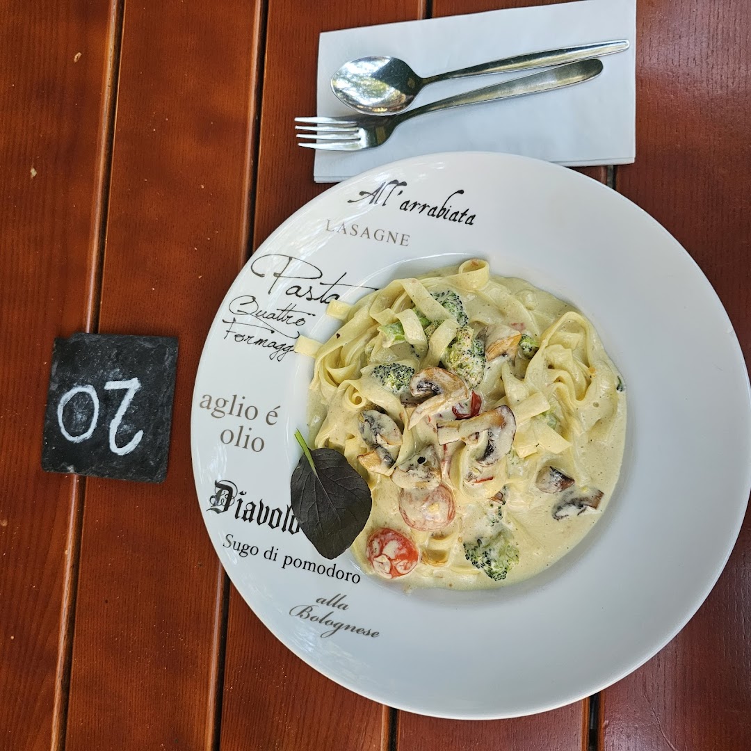 Блюдо: Pasta Quattro Formaggi (Vegetarisch). Описание блюда: Mit Käse, Mozzarella, Parmesan, Gorgonzola und Sahnesauce. Wird mit einer Nudelsorte nach Wahl zubereitet.