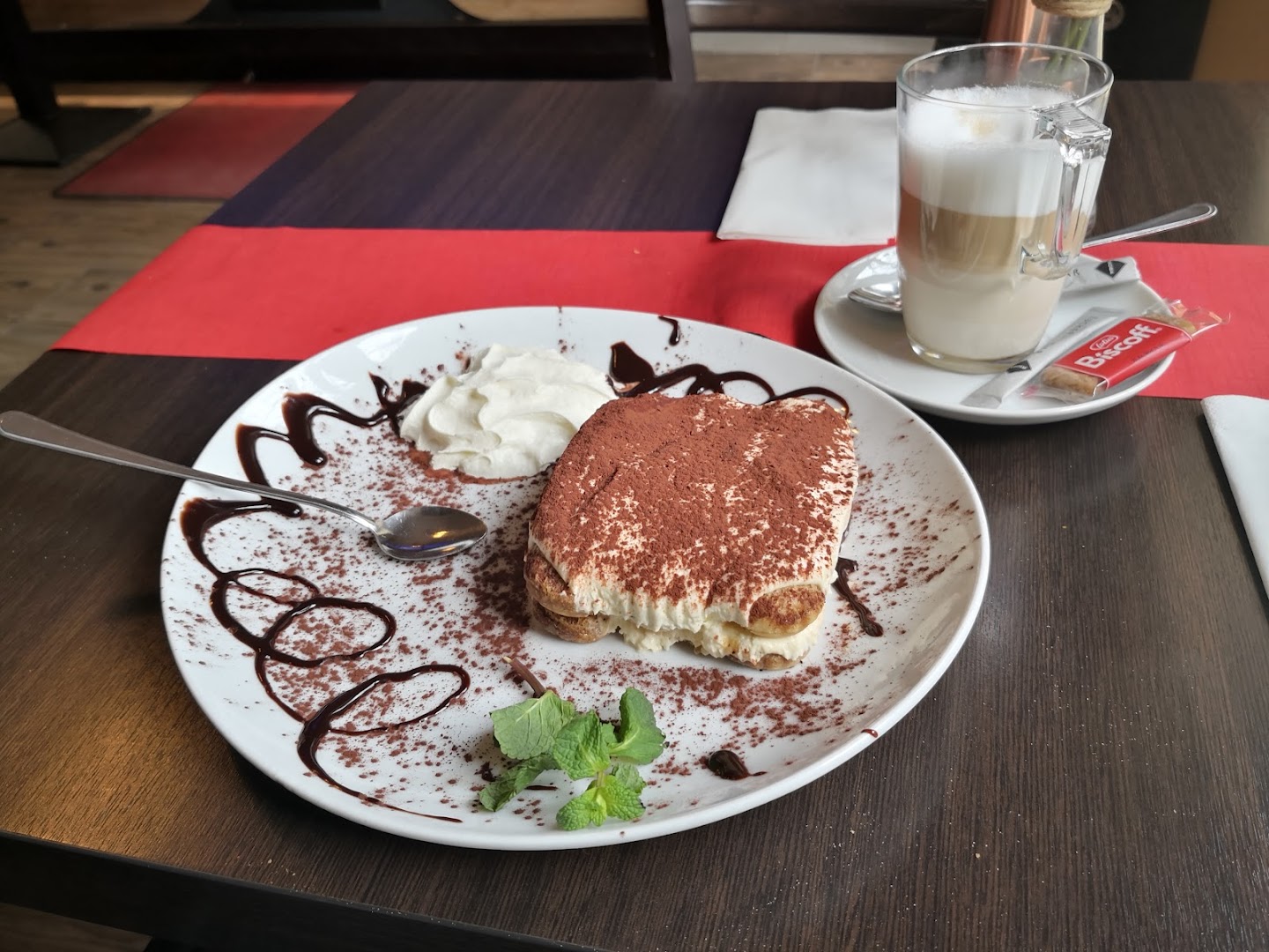 Блюдо: Pizza Veggie alla Chef (Vegetarisch). Описание блюда: Mit gebratenen Auberginen, gebratener Zucchini, Paprika und Broccoli. Wird mit Tomatensauce und Mozzarella zubereitet.
