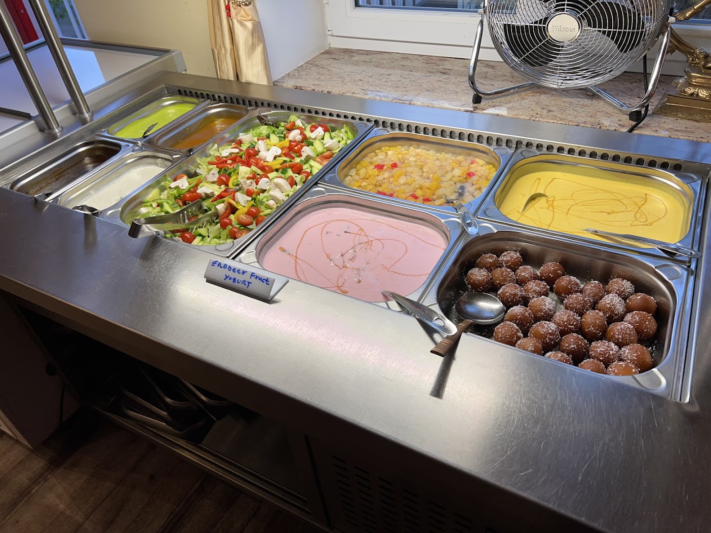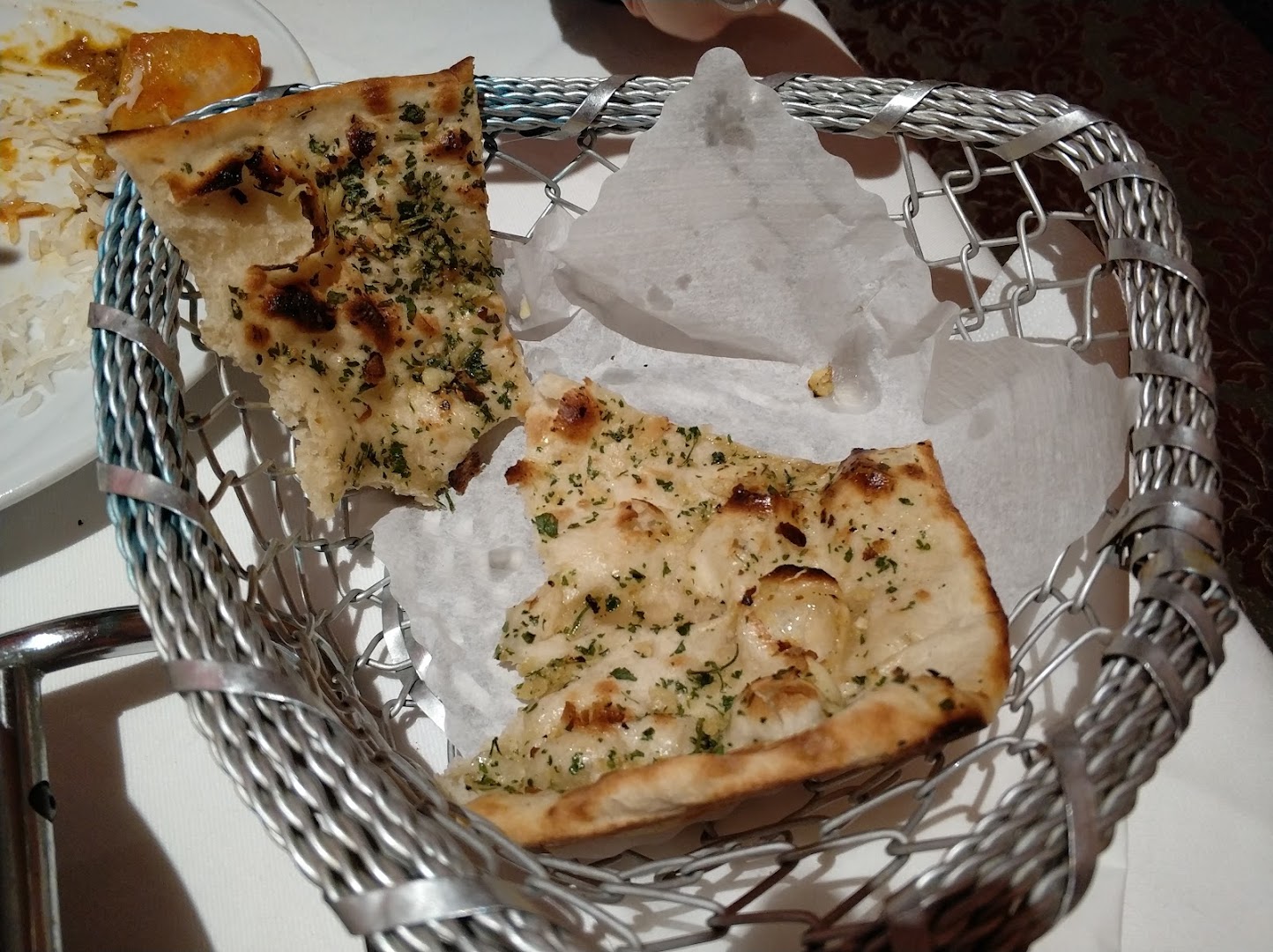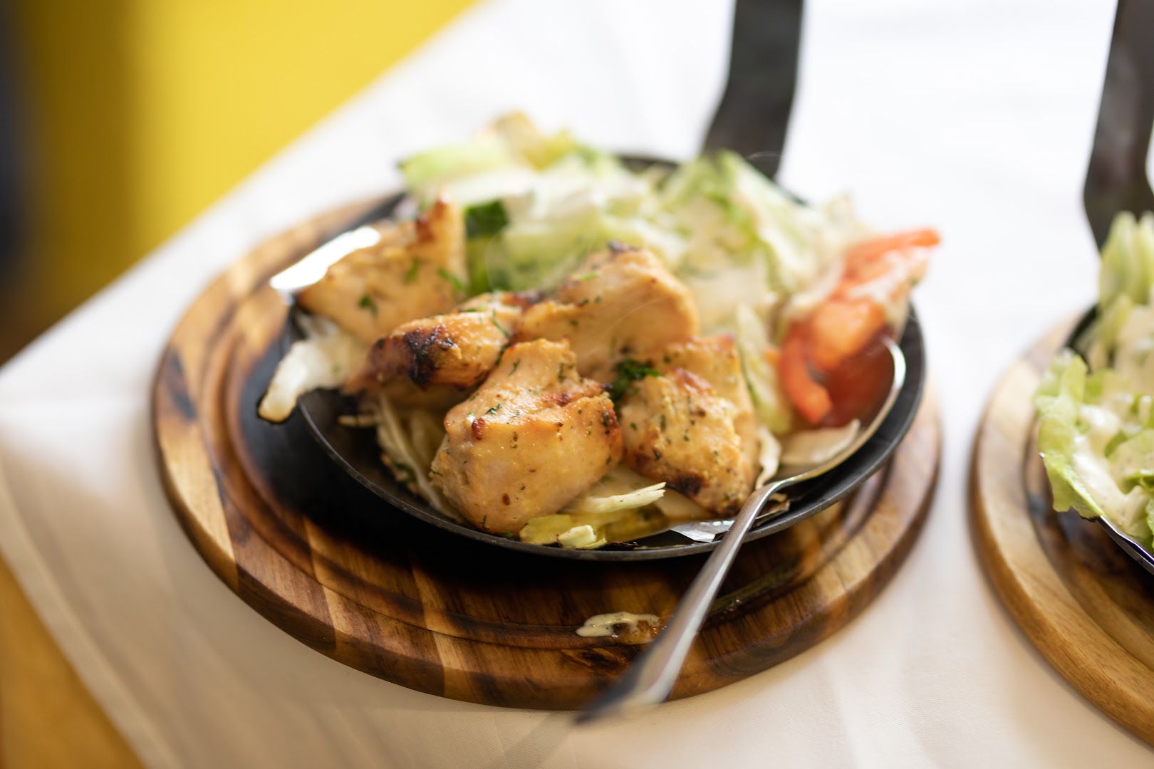 Блюдо: Tandoori Mix. Описание блюда: Zusammenstellung aus verschiedenen Tandoori-Spezialitäten mit Salatbeilage. Wird im indischen Lehmofen gegrillt und mit Naan serviert.
