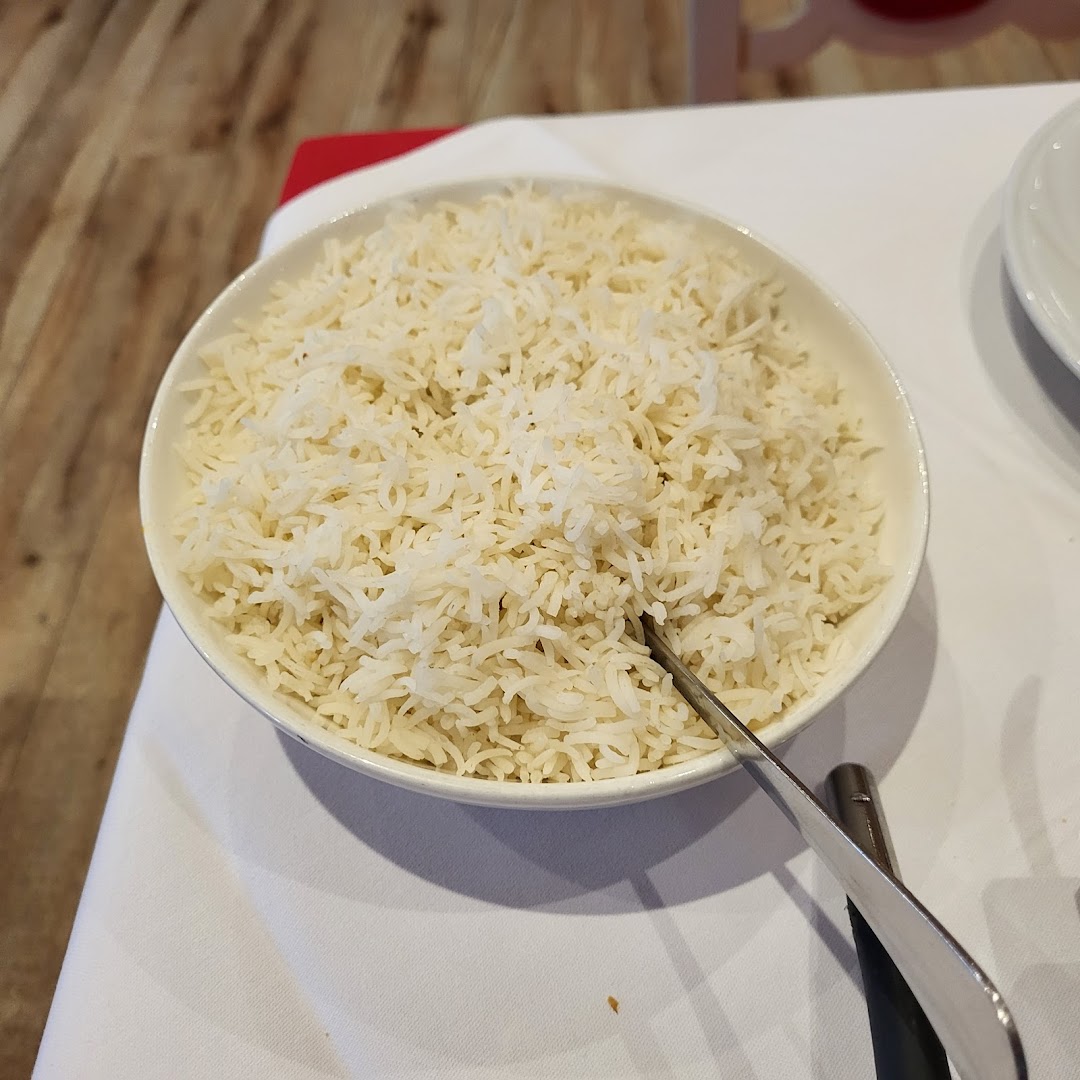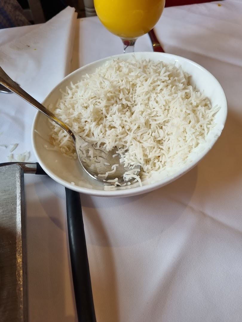 Блюдо: Shahi Biryani. Описание блюда: Reis mit Ei, Lamm- und Hühnerfleisch, Garnelen sowie Nüssen Wird in der Pfanne zubereitet und mit Mandeln, Rosinen sowie Kokosnussflocken verfeinert.