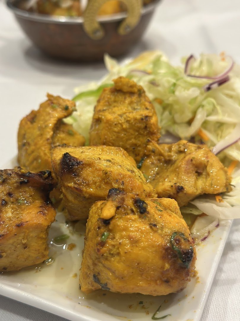 Блюдо: Chicken Tikka (6 PCs). Описание блюда: Dados de pollo hechos al tandoor marinados con yogurt, limón, jengibre y especias aromáticas. Chicken pieces with yogurt, lemon, ginger and aromatic spices & coocked in tandoor.
