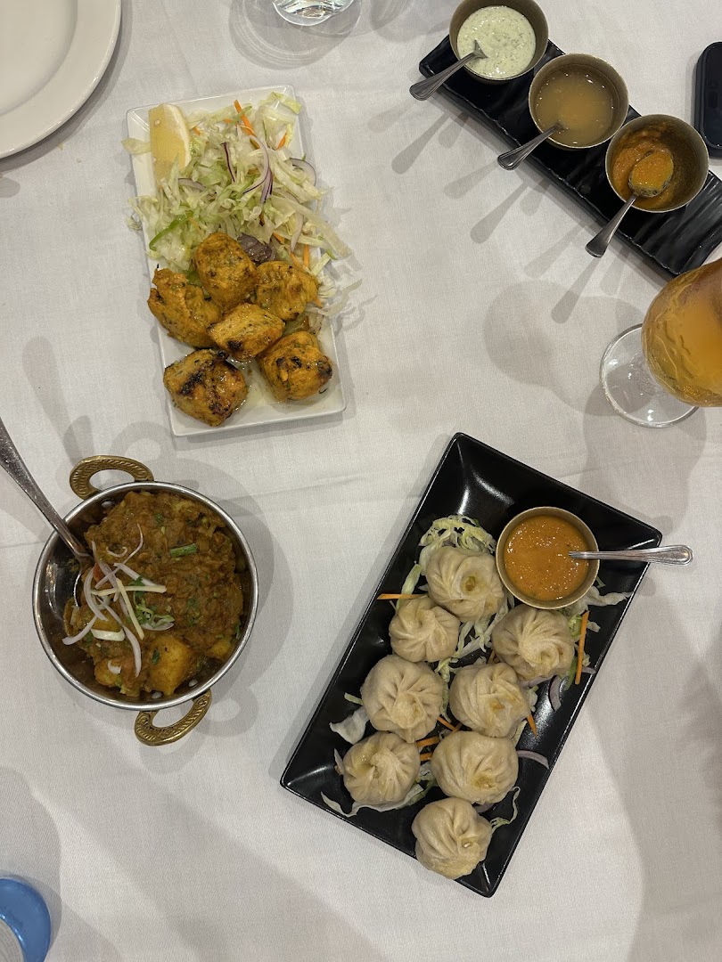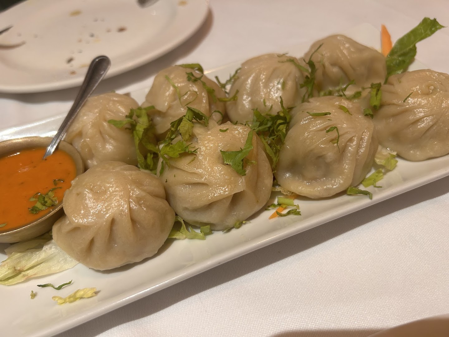 Блюдо: Chicken Nepalí Momo (8 PCs). Описание блюда: Empanadillas de harina de trigo rellenas de pollo, especiadas con hierbas del himalaya, cocinadas al vapor. Wheat flour dumpies stuffed with chicken, spiced with himalayan herbs, steamed.