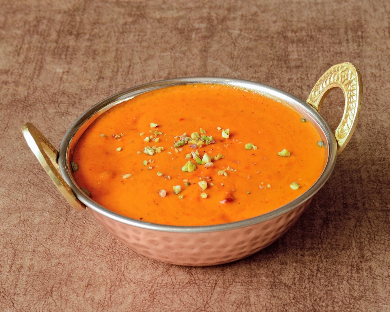 Блюдо: Veg Korma. Описание блюда: Surtido de verduras con frutos secos, azafran y crema de anacarnos, cocinados en una deliciosa salsa. Assortment of vegetables with dry fruits, saffron, and cashew cream, cooked in a delicious sauce.