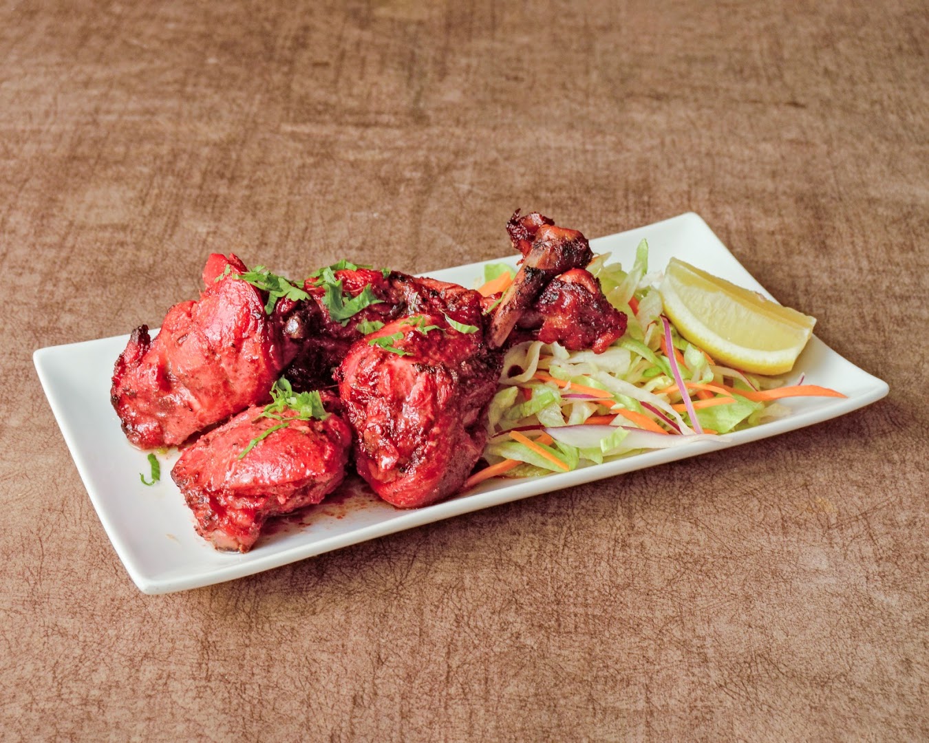 Блюдо: Chicken Tandoori (4 PCs). Описание блюда: Muslo de pollo cocinado en tandoor, marinado con yogurt, zumo de limón servido con una ensalada especial del chef. Chicken thighs marinated with special spices, prepared with yogurt, lemon juice and cooked in tandoor, servedwith mix salad and sauce.