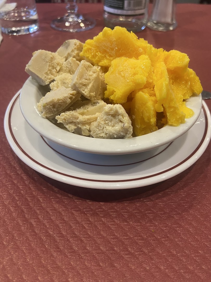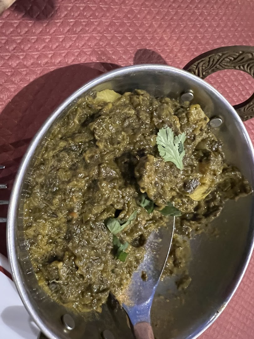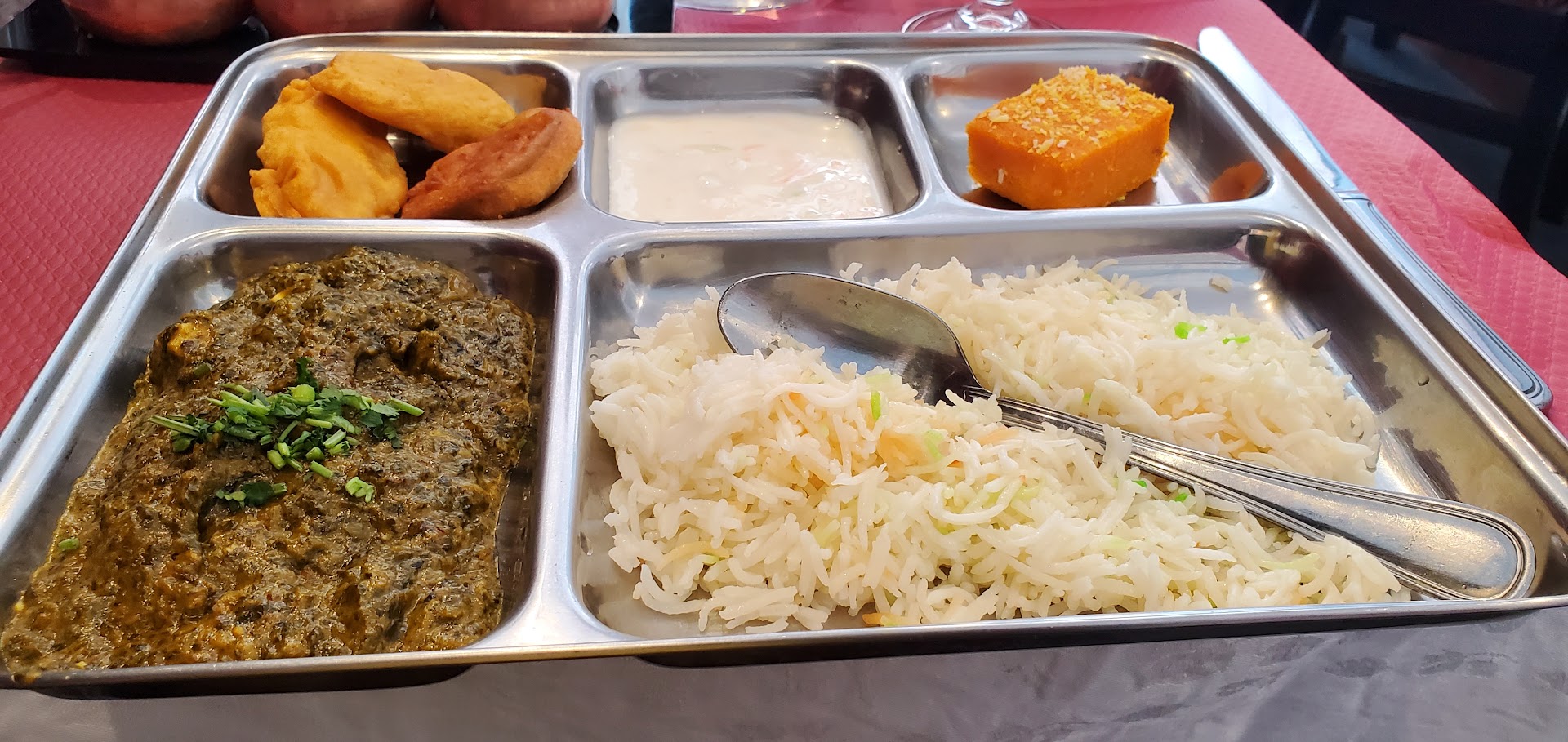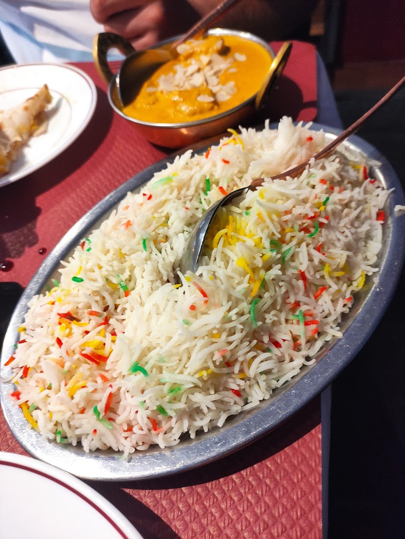 Блюдо: Biryani d'agneau. Описание блюда: Morceaux d'agneau mijotés avec du riz basmati et différentes épices. Le biryani est un plat réputé, à base de riz basmati et des vingt épices.