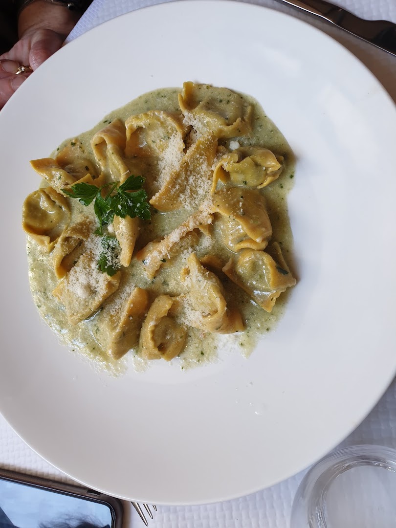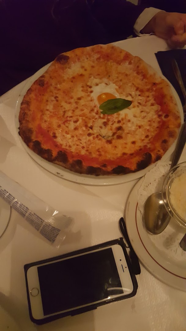 Блюдо: PIZZA CORNICCIONE RICOTTA E TARTUFO. Описание блюда: pizza croit farcie de ricotta truffée,fiore di latte,jambon san daniele,burratina pugliese 100gr, basilic.