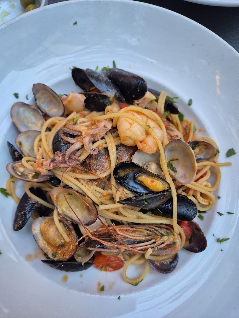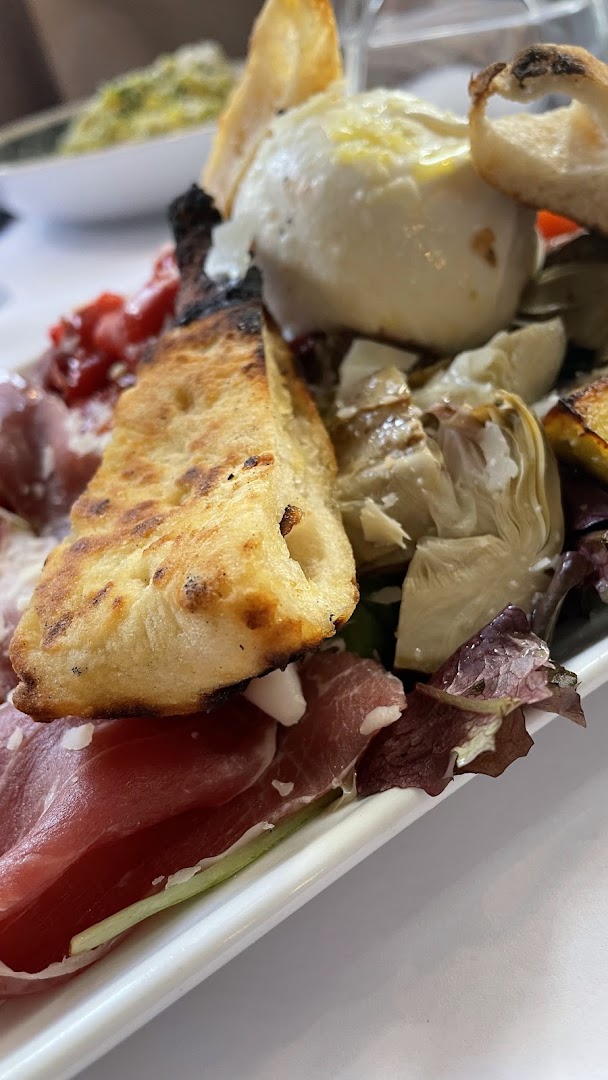 Блюдо: Antipasto misto all italiana "antipasti à partager. Описание блюда: Dégustations des charcuteries, légumes grillées marinées, caponata siciliene, buffala.